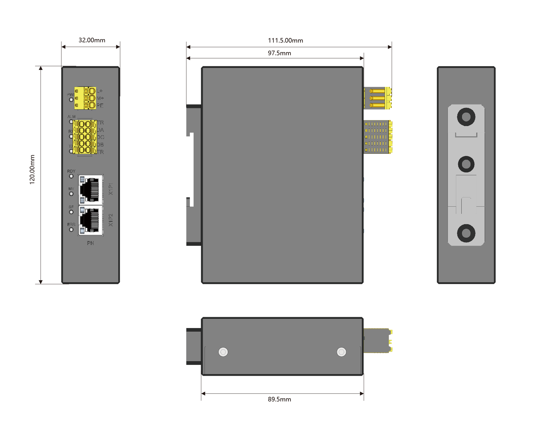 工業網關,PROFINET(2xRJ45)~ Modbus RTU主站(1xRS485),24VDC,DIN35導軌安裝