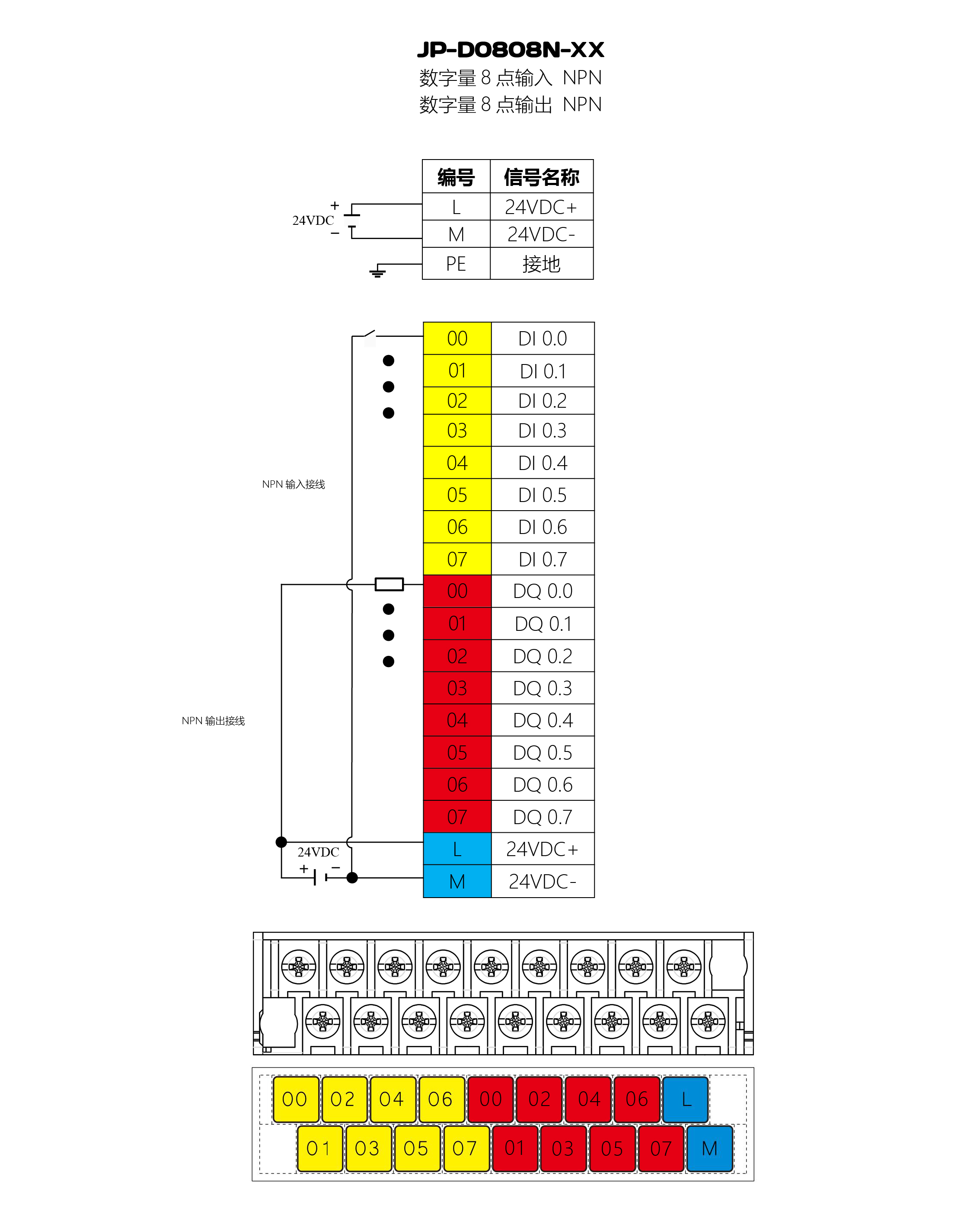 柵欄式螺釘分布式I/O,雙網口,可級聯,支持CC-Link IE FieldBasic協議,8DI_NPN,8DO_NPN,0.5A,24VDC