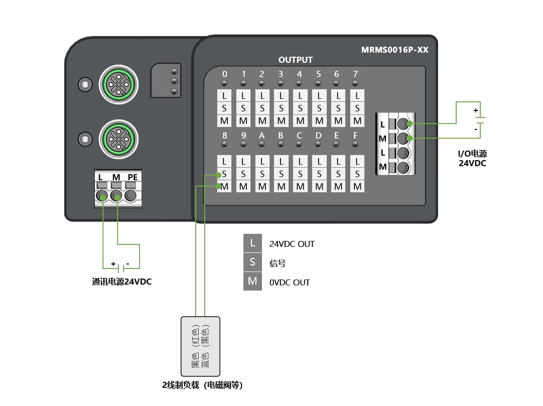 電源接口:模塊供電:3P歐式彈簧端子;負載供電:4P歐式彈簧端子