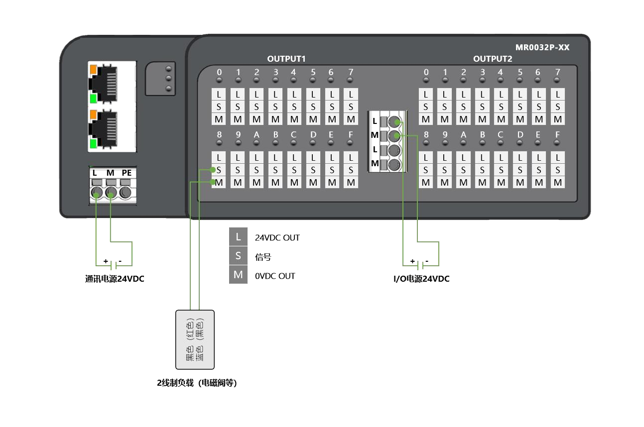 電源接口:模塊供電:3P歐式彈簧端子;負(fù)載供電:4P歐式彈簧端子