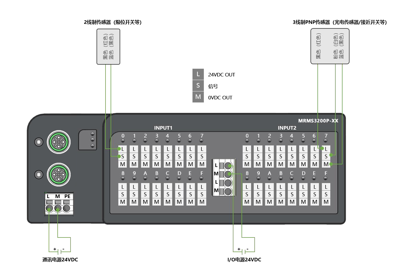 電源接口:模塊供電:3P歐式彈簧端子;負載供電:4P歐式彈簧端子