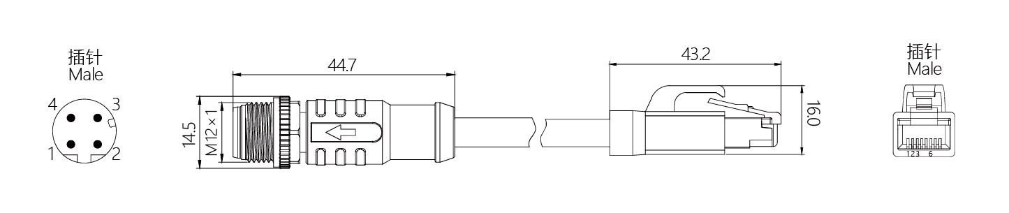 規(guī)格描述:M12-RJ45,直型針-RJ45,D-Code